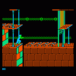 Много сил ушло на то, чтобы спрайты не мигали. Практически во всех БКашных играх спрайты мигают. Вначале мы думали, что это дефект видеоадаптера, но все объяснялось просто: при движении спрайта его необходимо стереть в одном месте и вывести в другом. Т.е. некоторое время на экране спрайта нет. Вот и проглядывает временами через него фон, что и выглядит как мигание. Когда мы это поняли, проблема была решена (Хотя для этого пришлось завести скрытый экран, теряя 16К памяти). Но спрайты в нашем "Принце" не мигают!